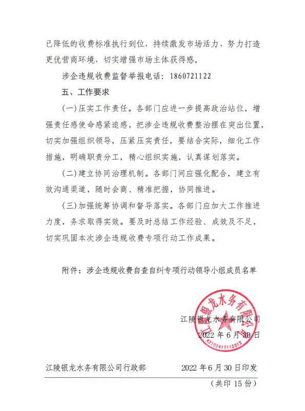 关于开展涉企违规收费自查自纠专项行动的通知